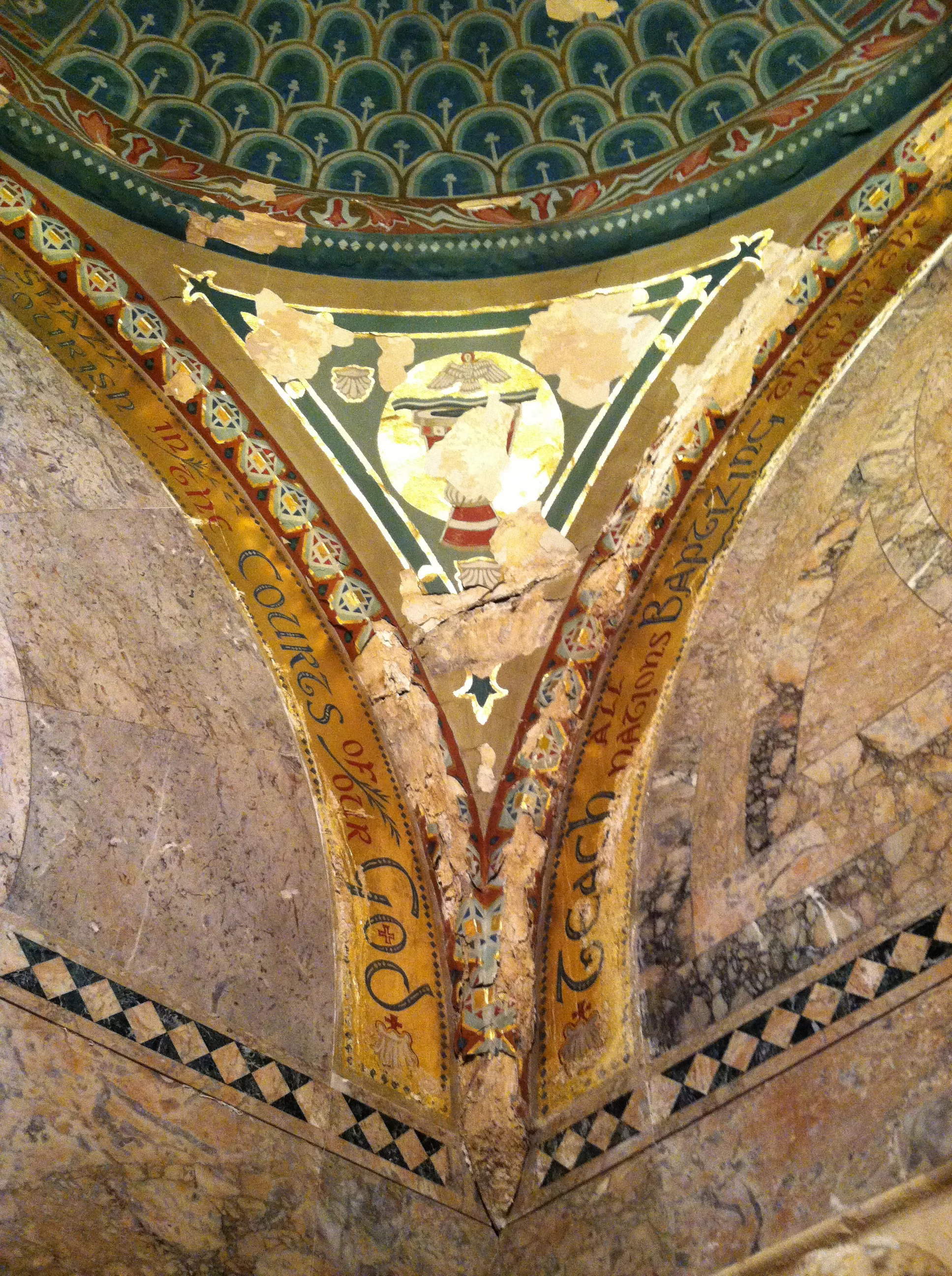 Detail of damaged dome. Opus conducted a plaster and paint analysis of the original finishes and performed image archival research.